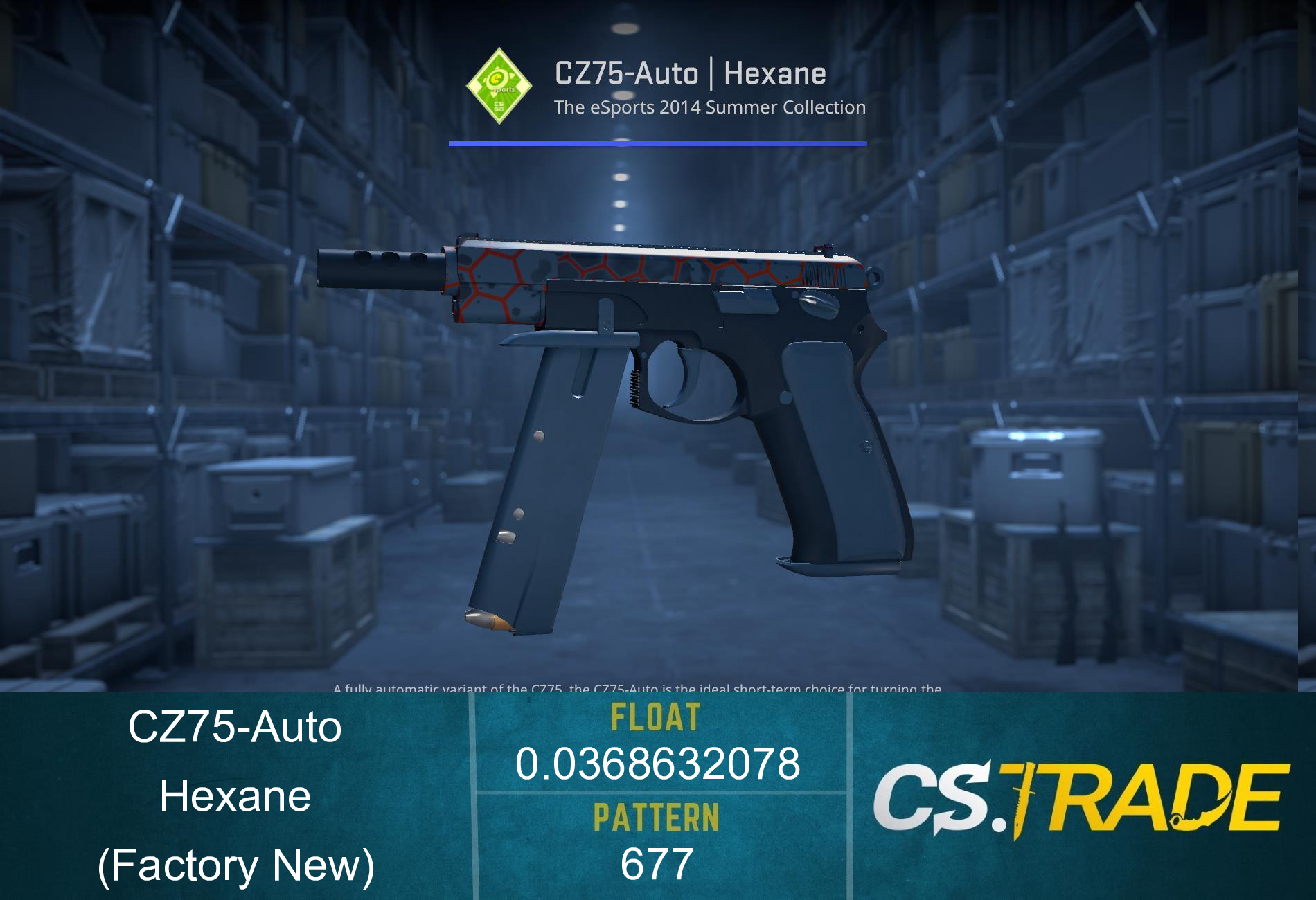 A demonstration of artistry, the CZ75-Auto | Hexane boasts a mesmerizing pattern of hexagonal grids on a sleek, black finish. It became a fan-favorite after being prominently used in the 2015 Winter Offensive. Its high usage rate and visually appealing design have kept its market value relatively stable, despite fluctuations in the overall skin market. It serves as a statement piece for many CS:GO players and collectors alike, standing out in the crowd.
