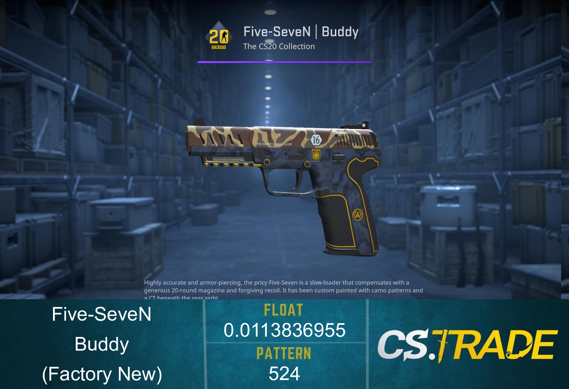 Five-SeveN | Buddy is an item of very low liquidity. It's hard to sell or trade. Traders rates this skin at 2.05/5.0.